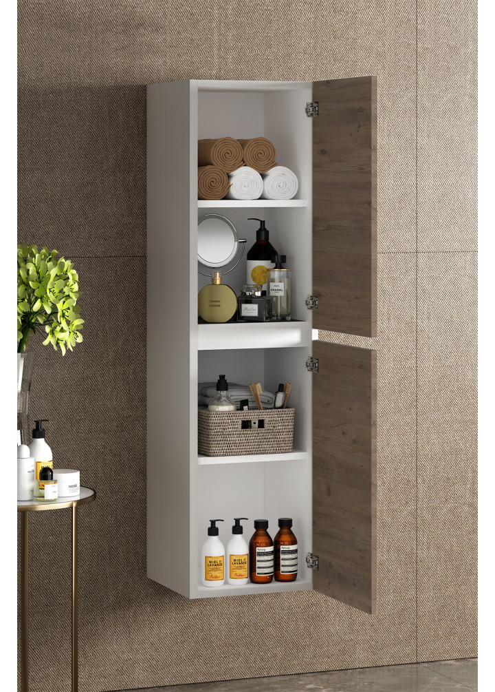 Yıldız 35*130 cm Beyaz- Atlantik Çam MDF Asma Banyo Boy Dolabı
