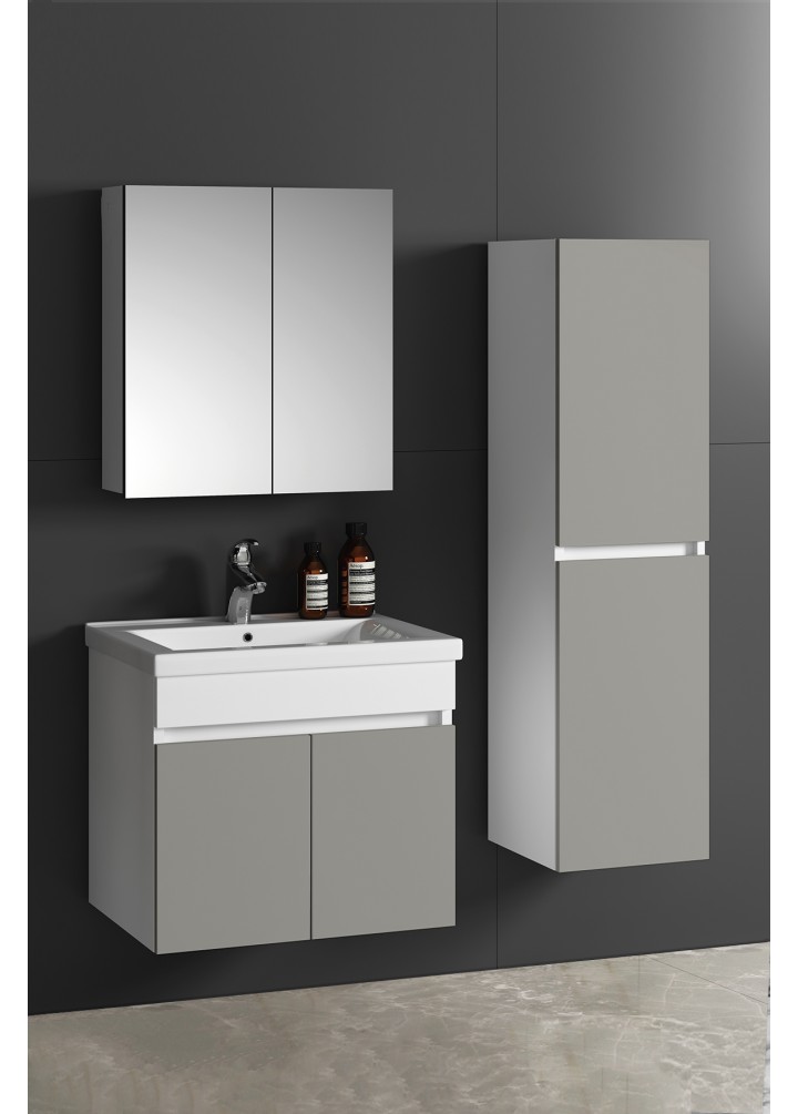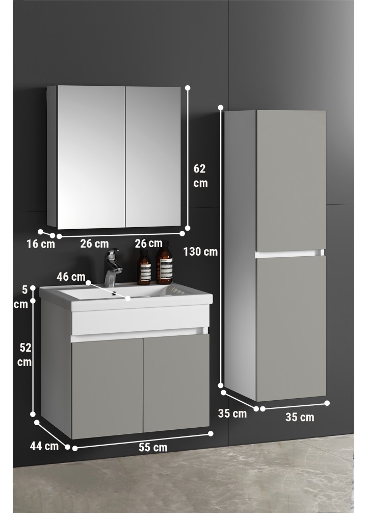 55+35 cm Çiğdem Aynalı Seramik Lavabolu Asma Banyo Dolabı Takımı