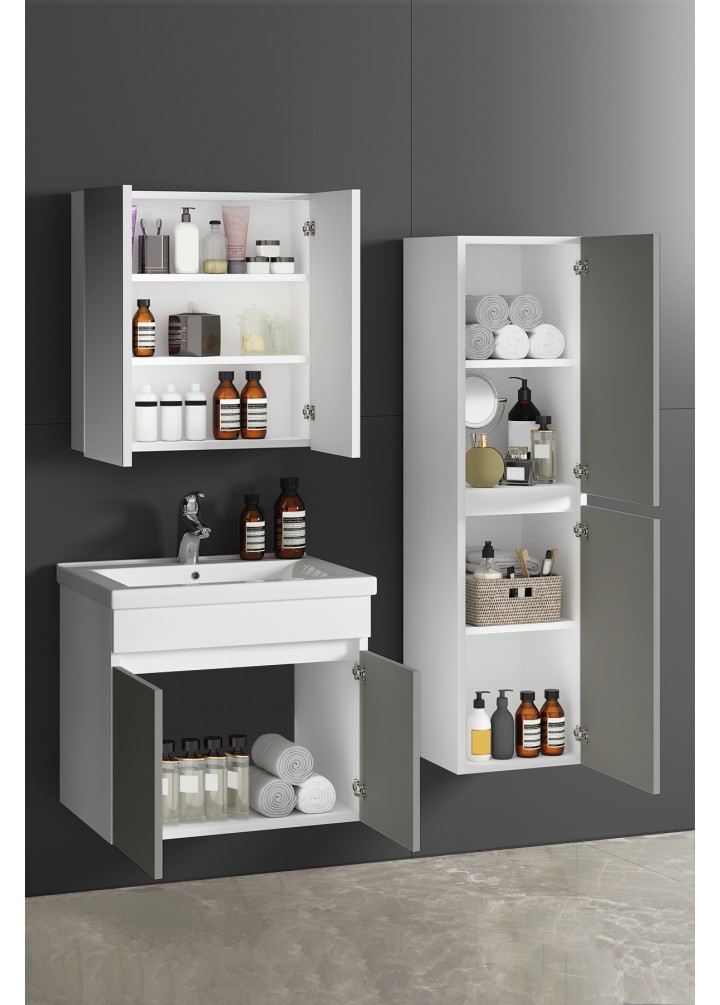 Çiğdem 55+35 cm Beyaz-İnox Balon MDF Seramik Lavabolu Asma Banyo Dolabı Takımı