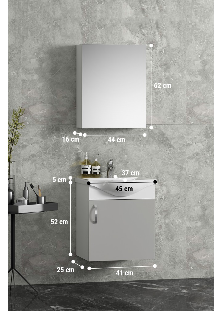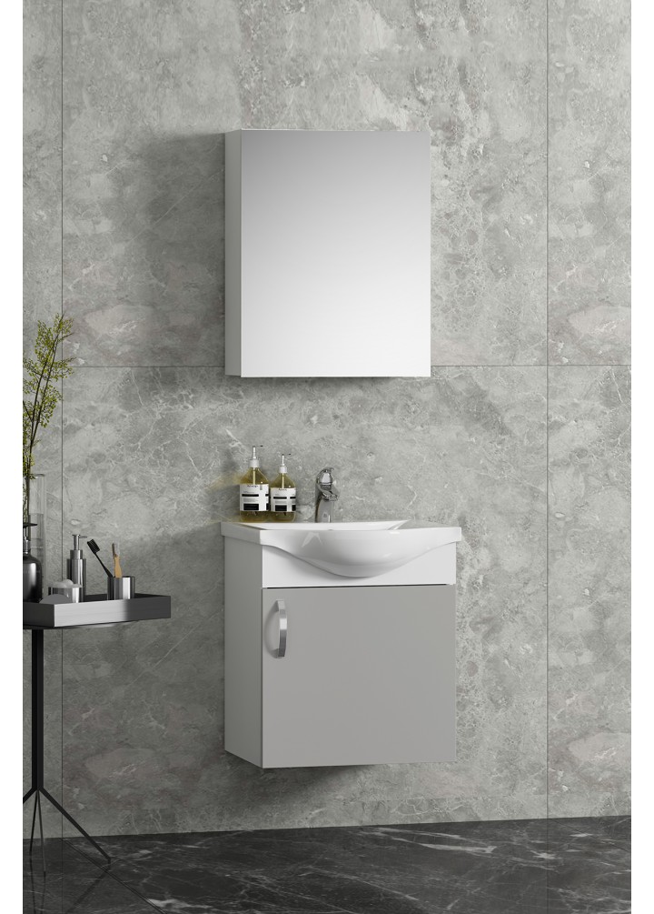 Yıldız 45 cm Beyaz-Sis Gri MDF Seramik Lavabolu Asma Banyo Dolabı Takımı
