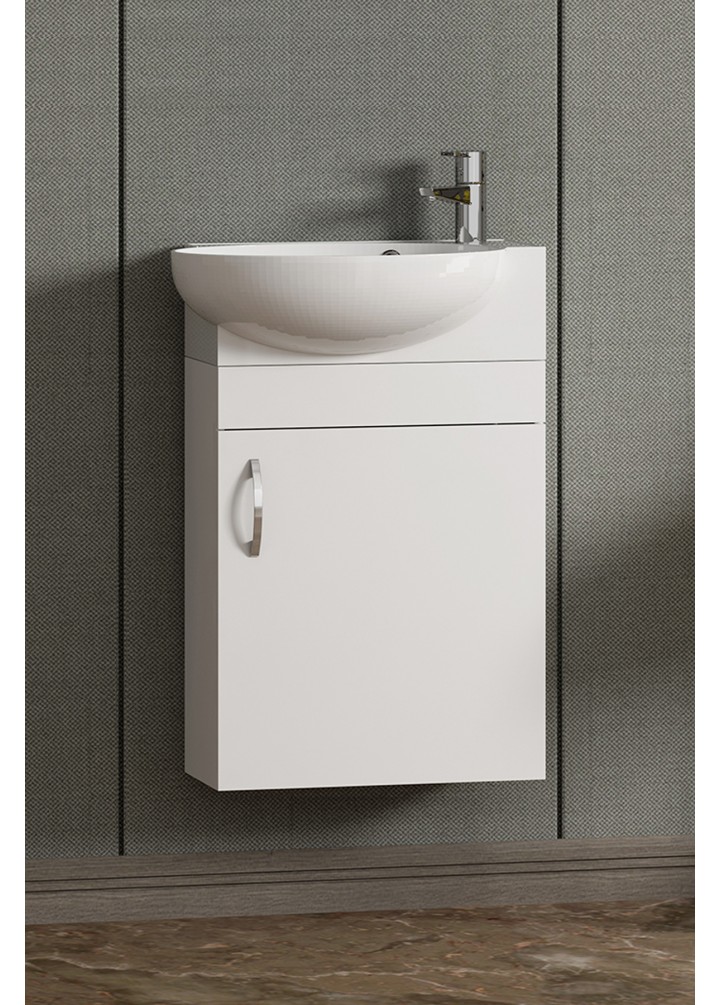 Lale 45 cm Beyaz MDF Seramik Lavabolu Asma Banyo Alt Dolabı