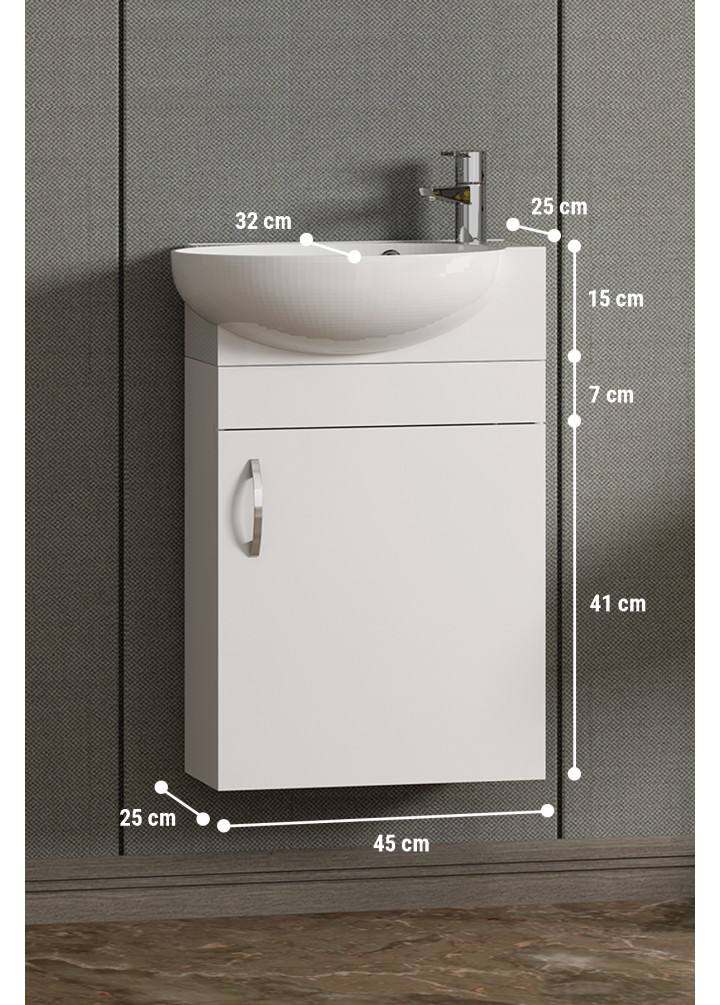 ALT DOLAP ÖLÇÜLERİ: EN: 45 cm (Lavabo En: 45) BOY: 63 cm DERİNLİK: 25 cm (Lavabo Derinliği: 32 cm)
