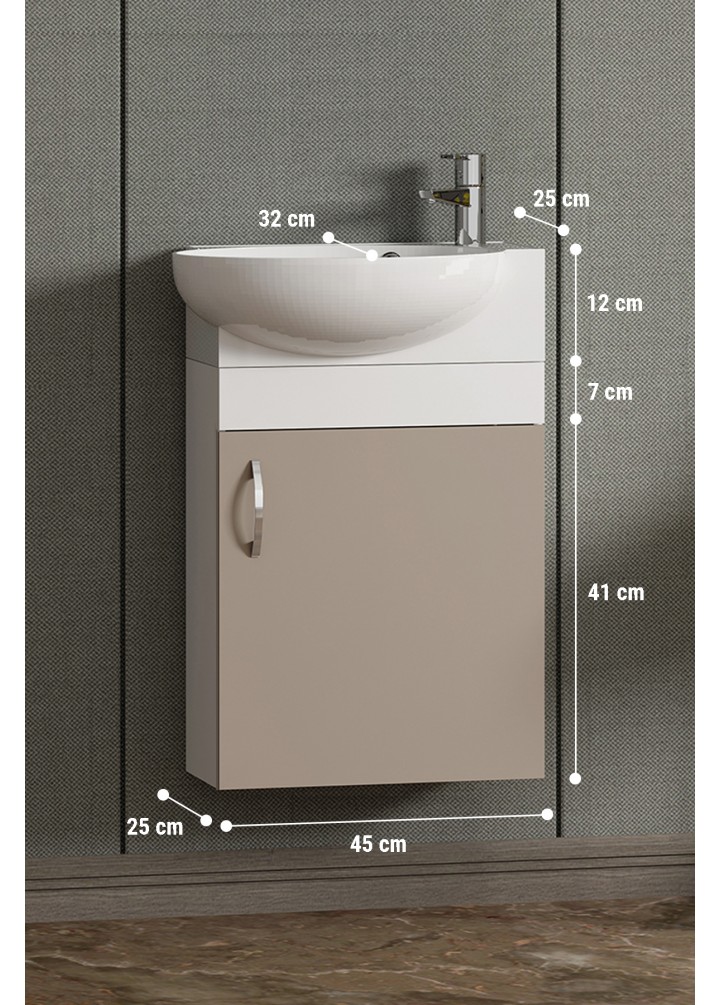 ALT DOLAP ÖLÇÜLERİ: EN: 45 cm (Lavabo En: 45) BOY: 63 cm DERİNLİK: 25 cm (Lavabo Derinliği: 32 cm)