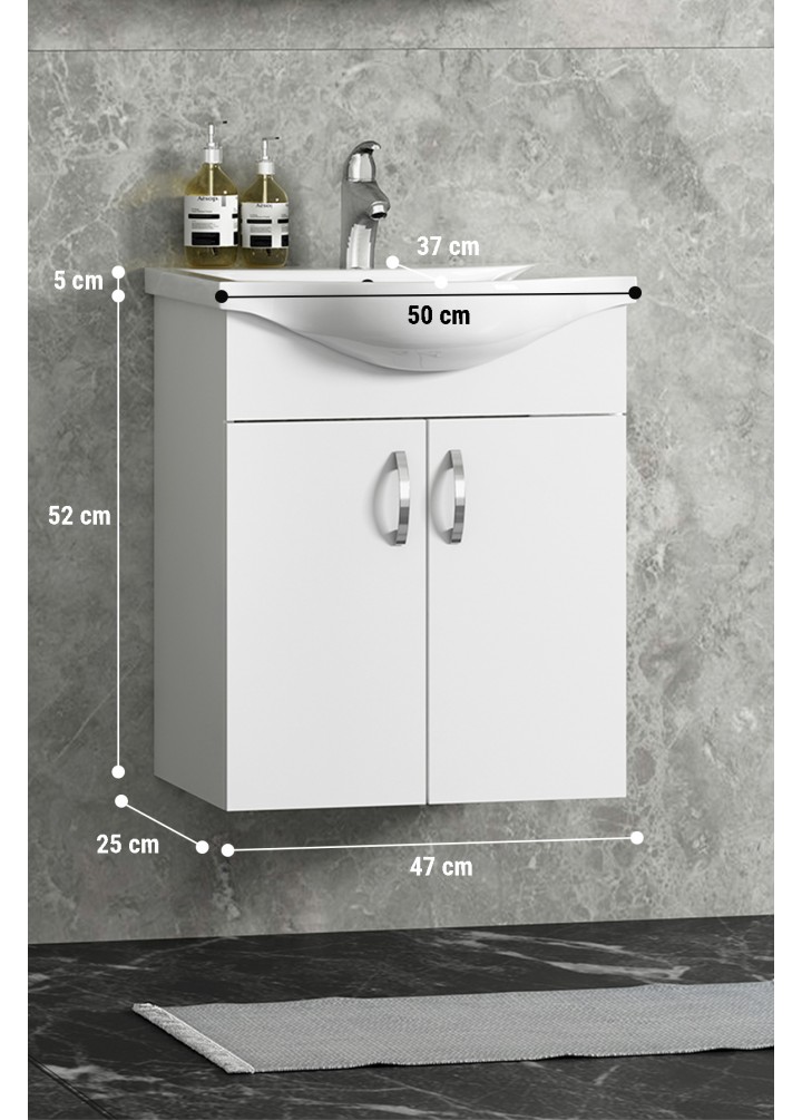 Yıldız 50 cm Beyaz MDF Seramik Lavabolu Asma Banyo Alt Dolabı
