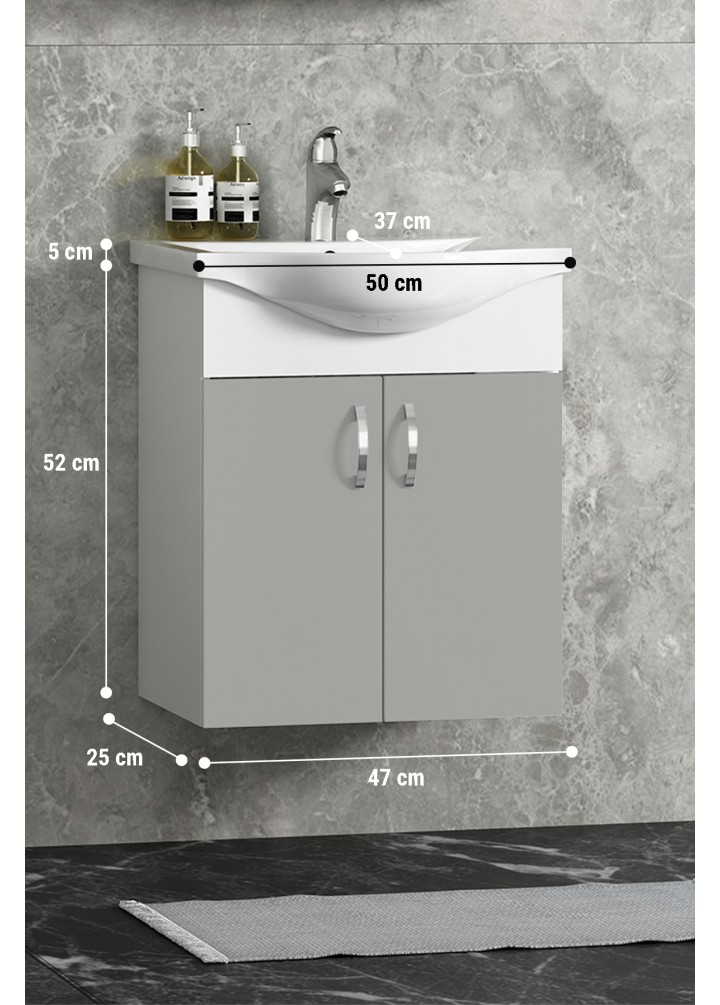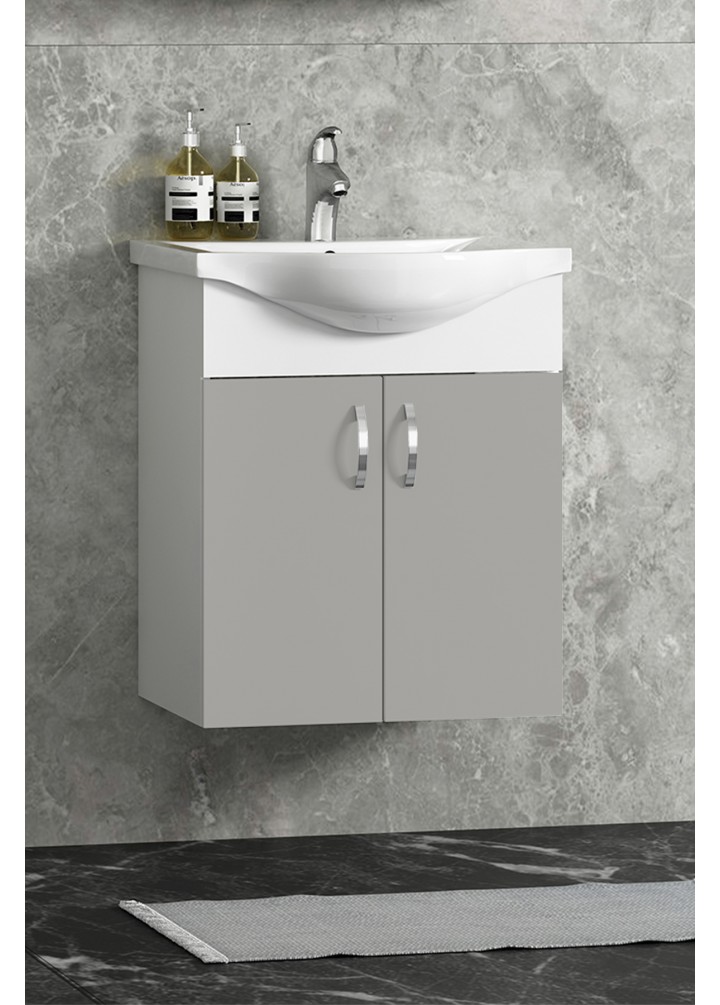 Yıldız 50 cm Beyaz-Sis Gri MDF Seramik Lavabolu Asma Banyo Alt Dolabı