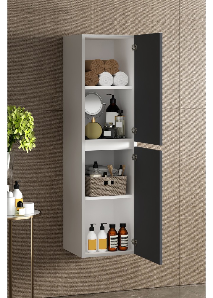 Yıldız 35*130 cm Beyaz-Füme Balon MDF Asma Banyo Boy Dolabı