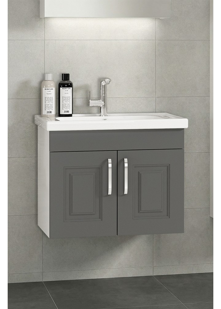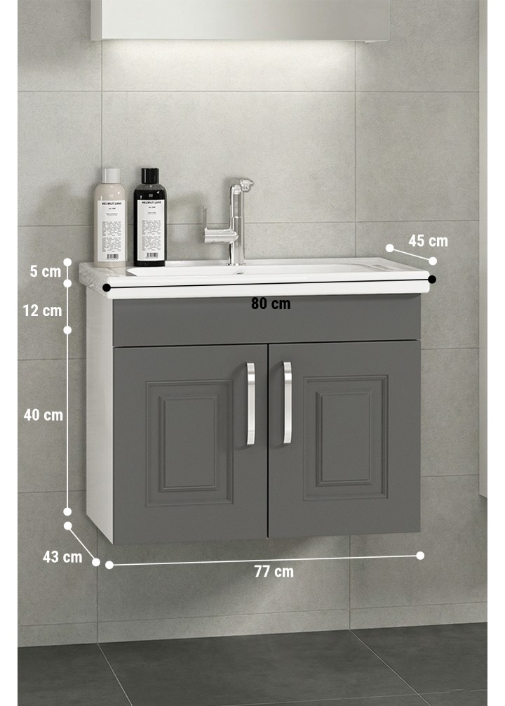 Salkım 80 cm Beyaz-Füme Balon MDF Seramik Lavabolu Asma Banyo Alt Dolabı